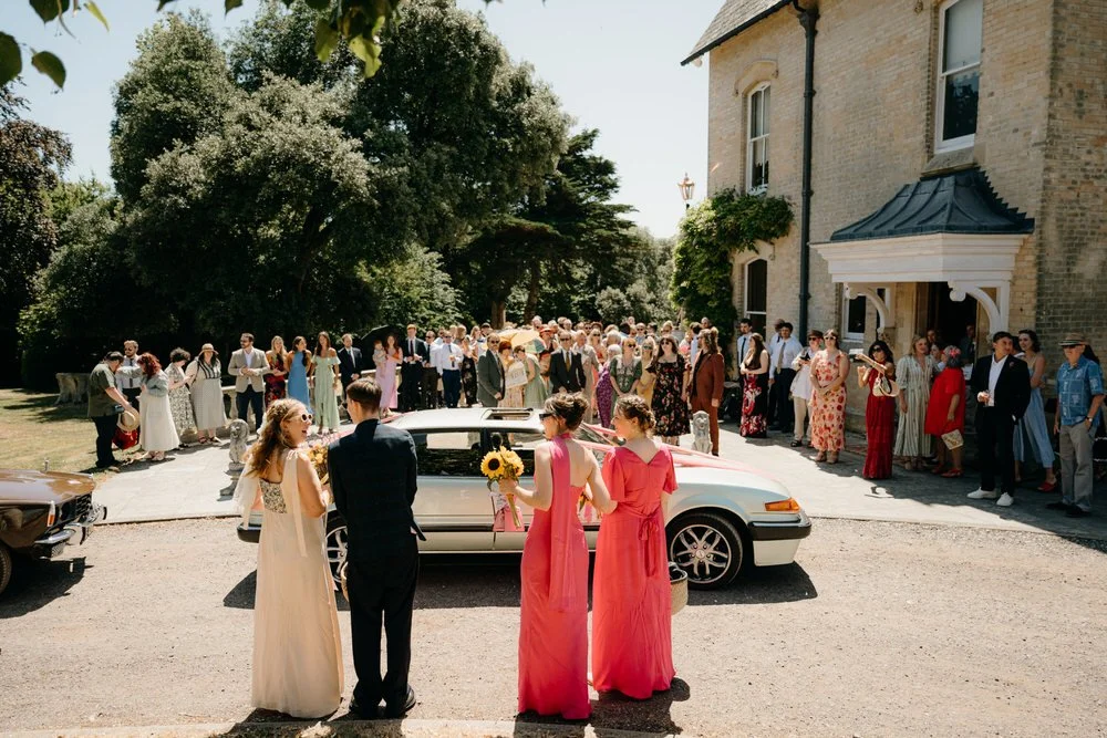 On a sunny day in July, Fran and Bryn celebrated their wedding surrounded by the people who mean the most to them. The day was full of beautiful colours and thoughtful personal touches that made it feel completely their own. Fran arrived with her bridesmaids in vintage cars, their hot pink dresses bringing such a vibrant energy to the celebration. Set at the beautiful Radipole Manor in Dorset, the venue provided the perfect setting for the day, with its characterful rooms, chandeliers, and spacious grounds creating a relaxed and welcoming atmosphere for everyone. With space for both intimate ceremonies and lively receptions, the manor allowed their celebration to flow naturally from heartfelt moments with family to a joyful evening spent with friends.